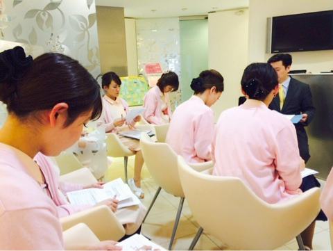 スタッフ全員の知識統一の為、月に一度院長を交えて勉強会を行なっています。治療や施術に関しての知識習得はもちろん、外部講師を招いての接遇研修など、その内容は多岐に渡ります。日頃疑問に思っていることの解決や、新たな情報を得るため、スタッフ全員で勉強会に臨んでいます。